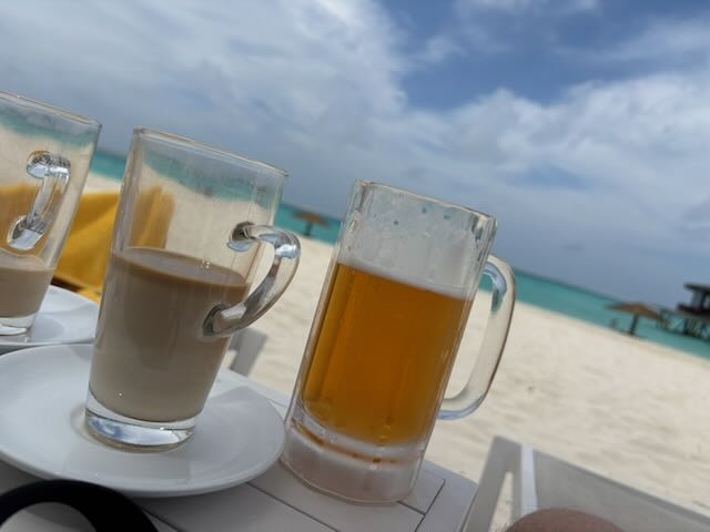 オールインクルーシブの誘惑には勝てず、まさかの朝ビールを注文。